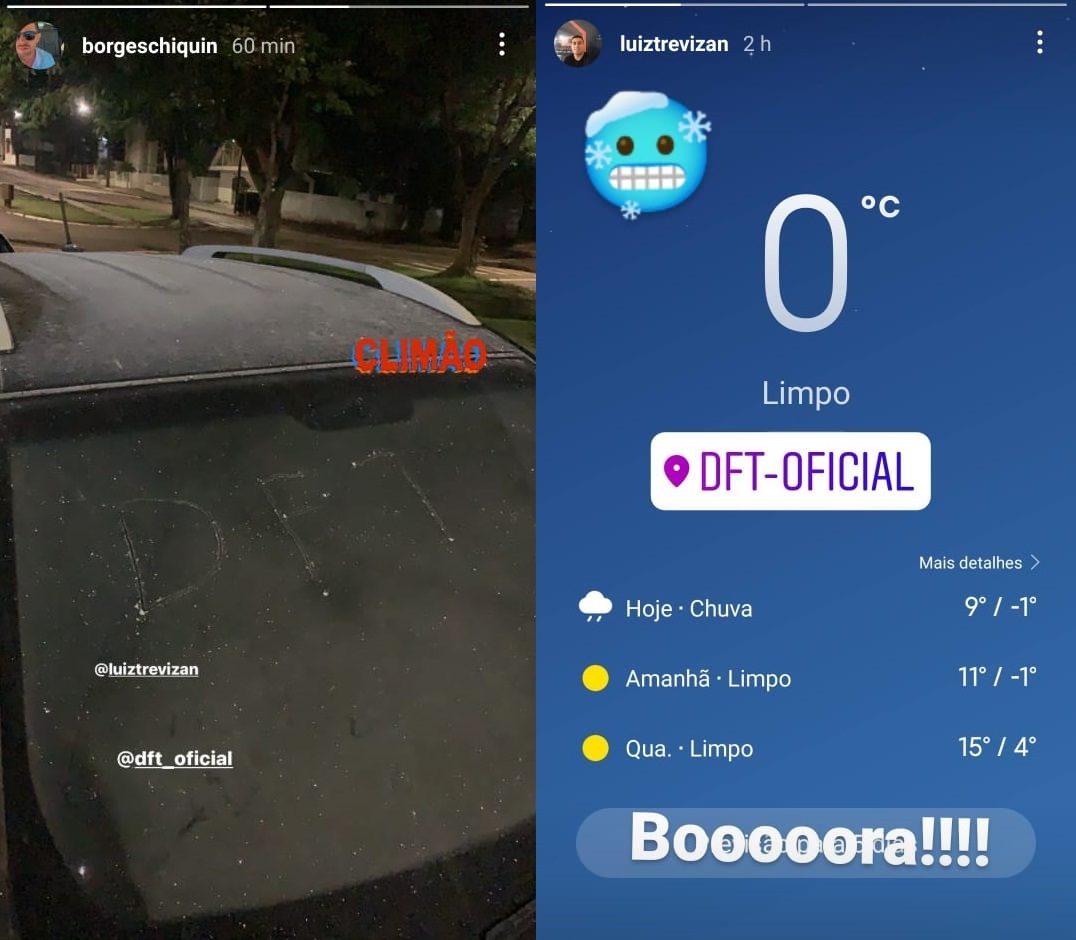 As temperaturas caíram, como já era previsto, e tribarrenses aproveitaram para registrar alguns momentos na madrugada fria desta terça-feira (29).