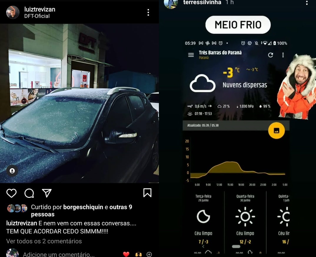 Neste momento, segundo o Clima Tempo a sensação térmica é de -1°C graus em Três Barras do Paraná.