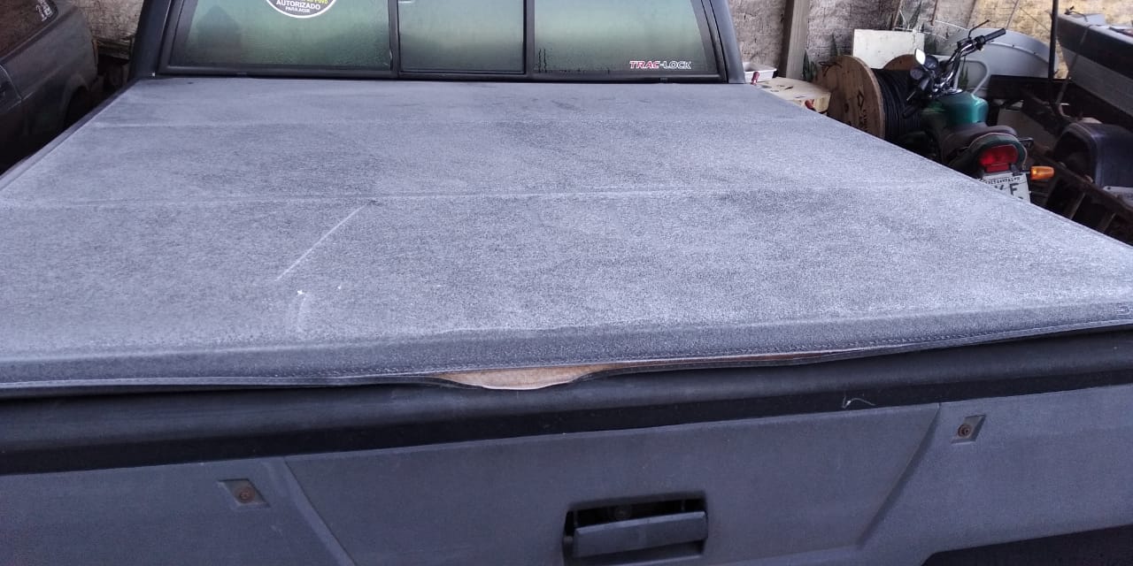 As fotos mostram camadas de gelo que se formaram no para-brisa e em cima de veículos.